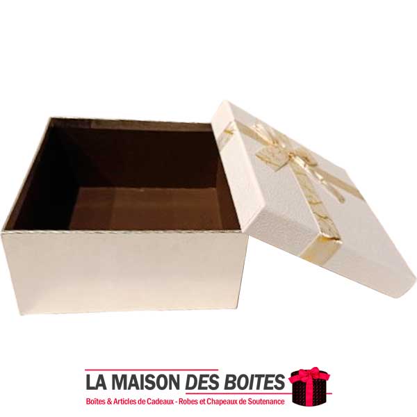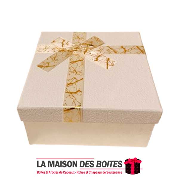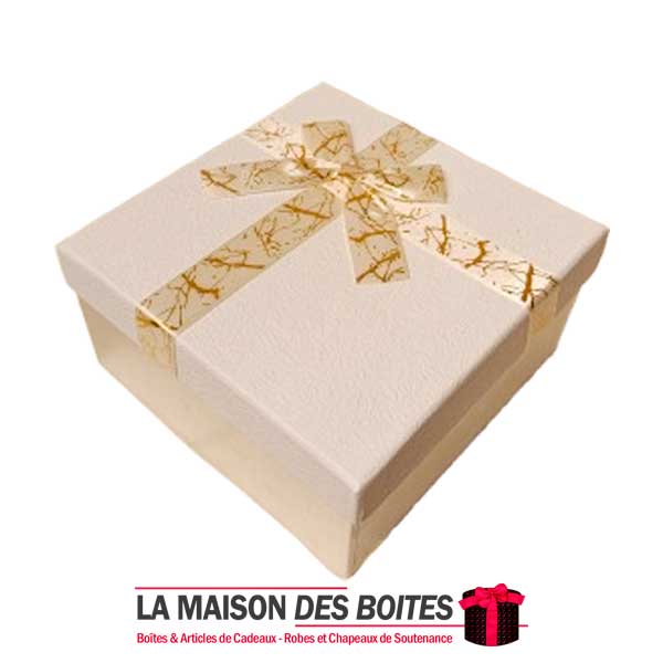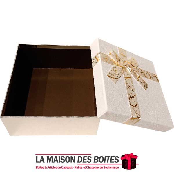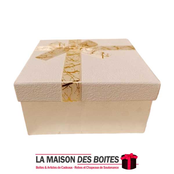 Une très belle façon d’offrir pour la Saint-Valentin ou bien d’autres occasions: de Boîte Cadeaux Carré en carton très épais de qualité de couleur Argent , avec Couvercle en couleur Blanc , Orné d’un ruban satine Blanc & Doré