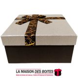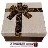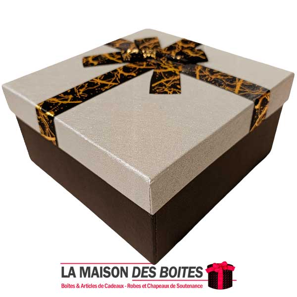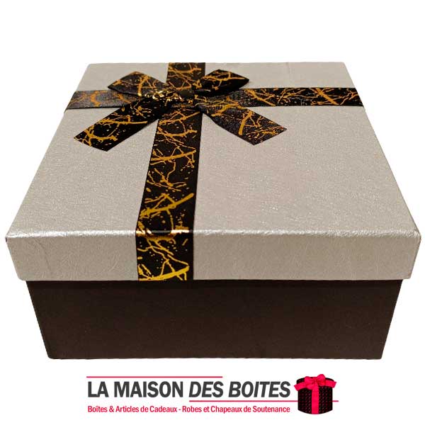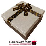 Une très belle façon d’offrir pour la Saint-Valentin ou bien d’autres occasions: de Boîte Cadeaux Carré en carton très épais de qualité de couleur Noir , avec Couvercle en couleur Argent , Orné d’un ruban cadeaux en ruban Rosesatine Noir & Doré