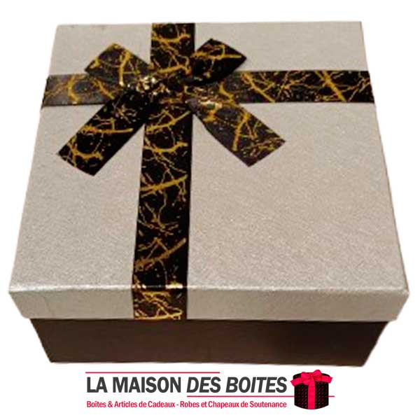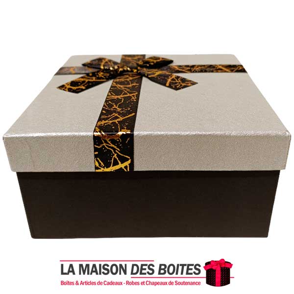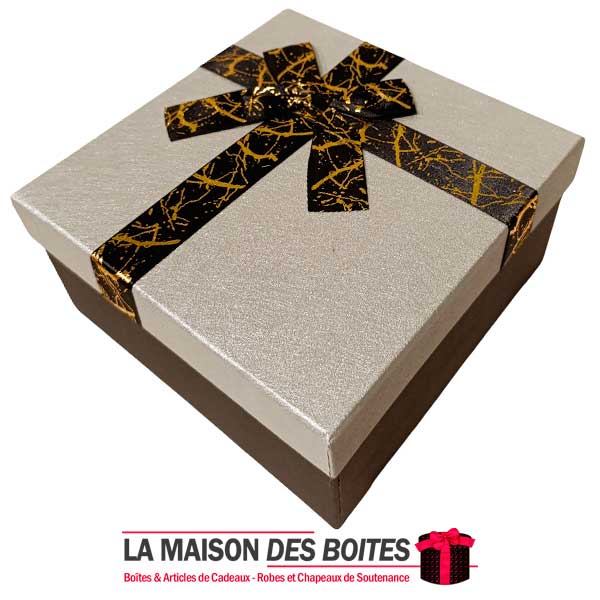 Be the first to review “Boîte Cadeaux Carré Noir avec Couvercle Argent & Ruban Satiné Noir – (L:18x18x9cm)”