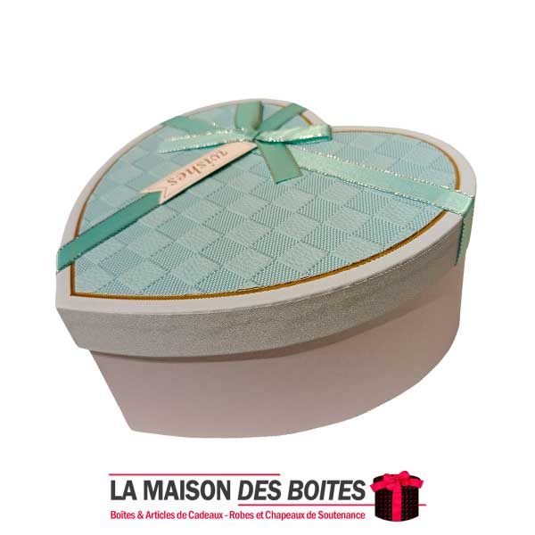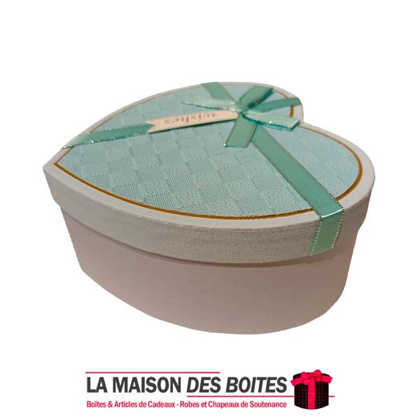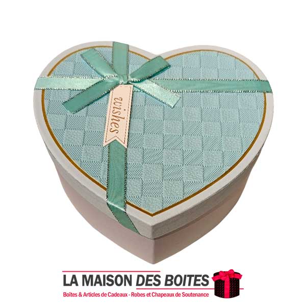 Une très belle façon d’offrir pour la Saint-Valentin ou bien d’autres occasions: de Boîte Cadeaux Coeur en carton très épais de qualité, Boite avec Couvercle , Orné d’un nœud cadeaux en ruban Satiné de couleur Bleu Turquoise