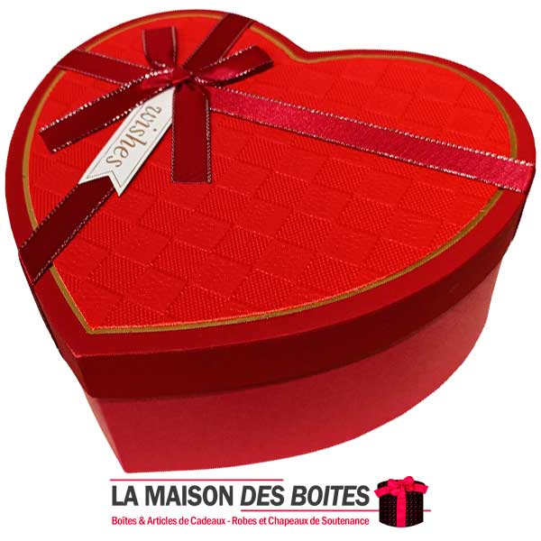 Une très belle façon d’offrir pour la Saint-Valentin ou bien d’autres occasions: de Boîte Cadeaux Coeur en carton très épais de qualité, Boite avec Couvercle en couleur Rouge , Orné d’un nœud cadeaux en ruban Rouge