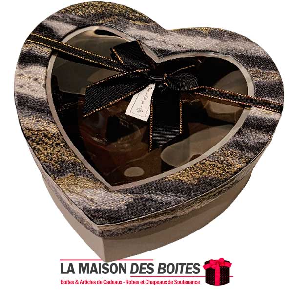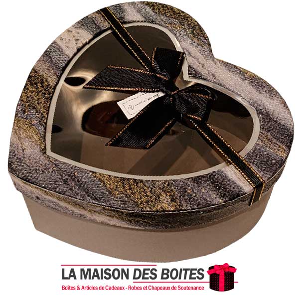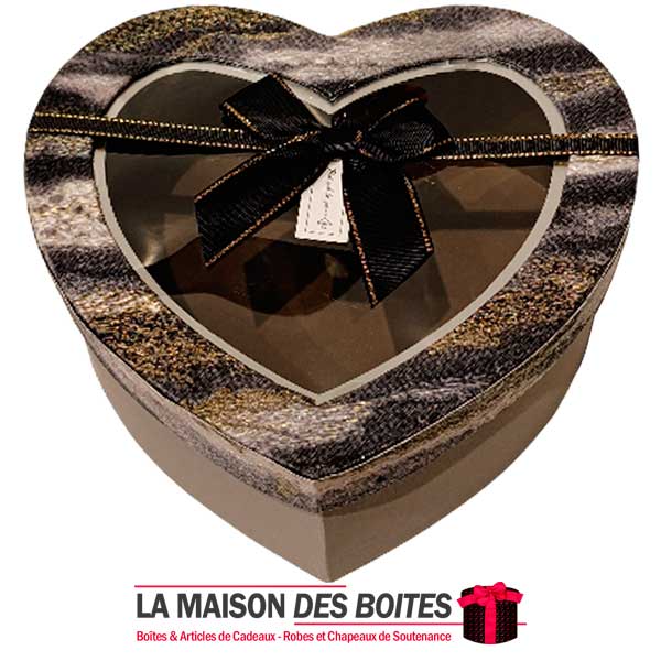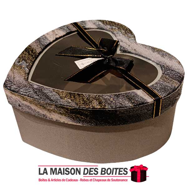 Une très belle façon d’offrir pour la Saint-Valentin ou bien d’autres occasions, boîte en carton très épais de qualité sous forme de cœur,Avec couvercle Transparent , orné d’un Ruabn satiné Gris