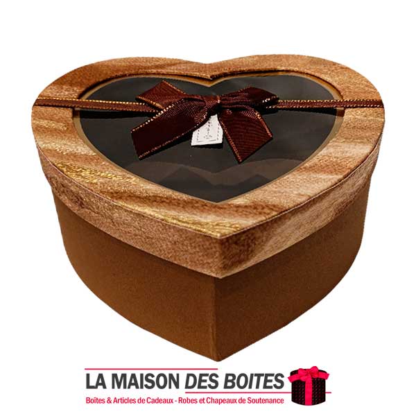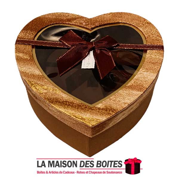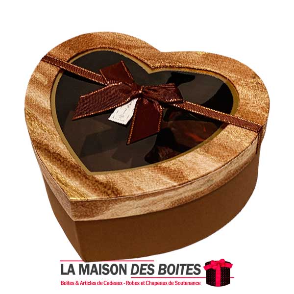 Une très belle façon d’offrir pour la Saint-Valentin ou bien d’autres occasions, boîte en carton très épais de qualité sous forme de cœur,Avec couvercle Transparent , orné d’un Ruabn satiné Marron