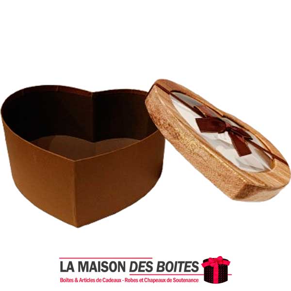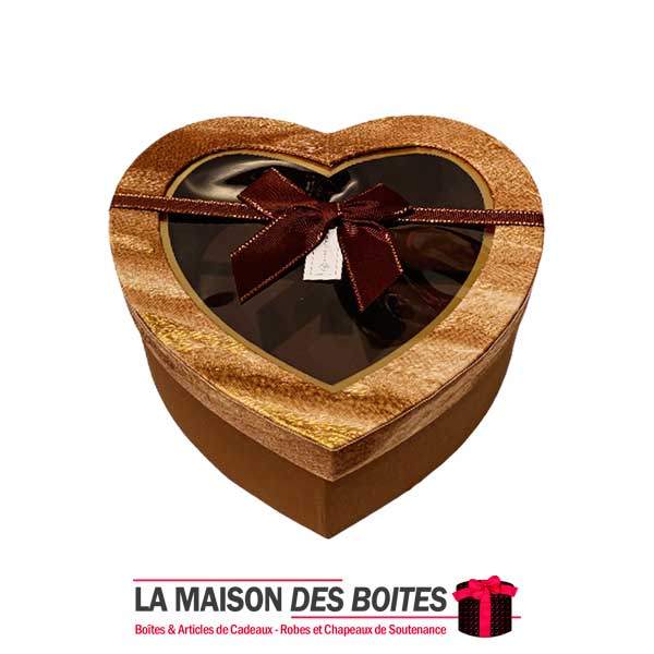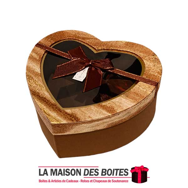 Une très belle façon d’offrir pour la Saint-Valentin ou bien d’autres occasions, boîte en carton très épais de qualité sous forme de cœur,Avec couvercle Transparent , orné d’un Ruabn satiné Marron