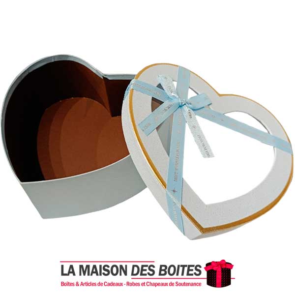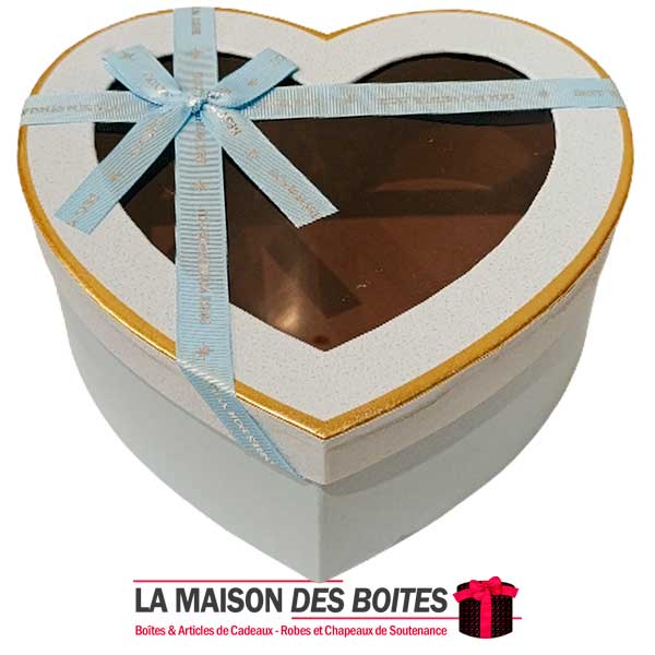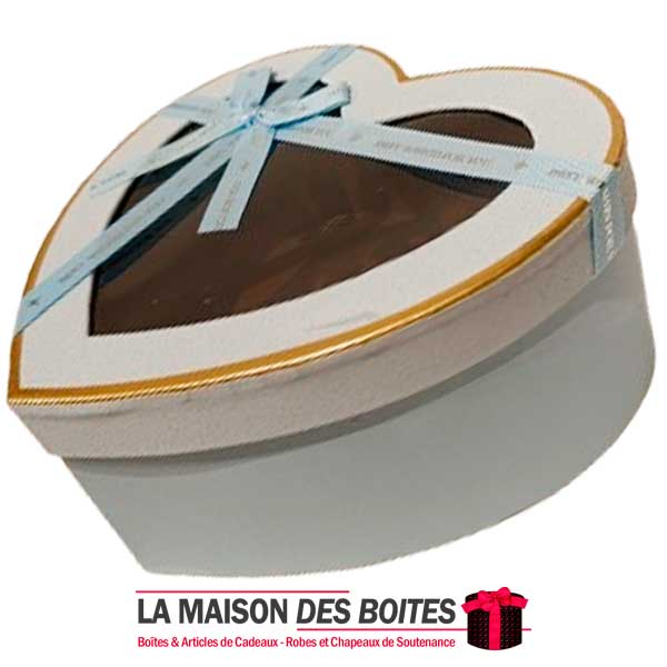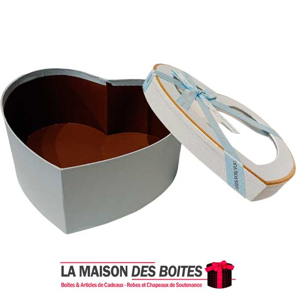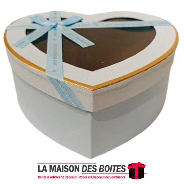 e très belle façon d’offrir pour la Saint-Valentin ou bien d’autres occasions, boîte en carton très épais de qualité sous forme de cœur,Avec couvercle Transparent , orné d’un Ruabn satiné Bleu Ciel