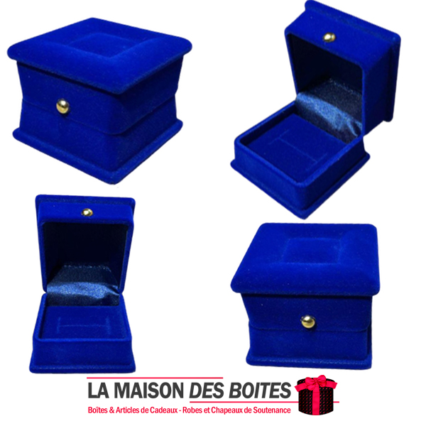 Boite en carton Carré Velours Bleu , intérieur socle mousse pour la pose votre cadeau