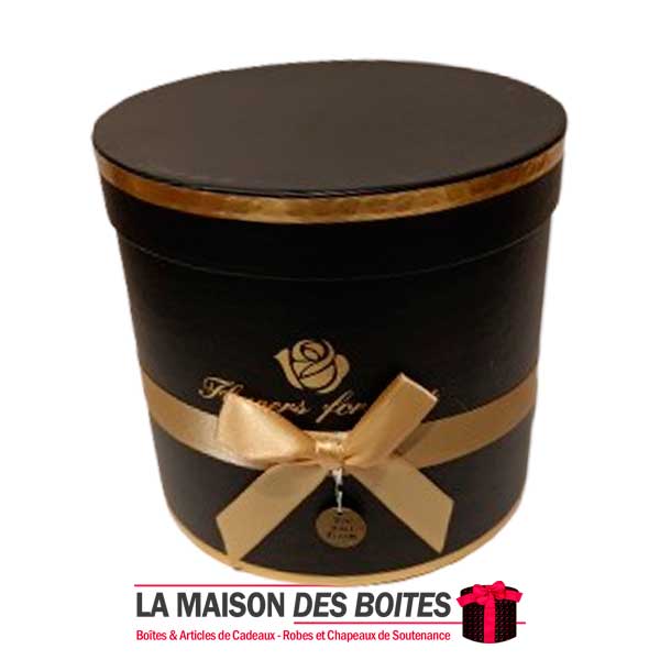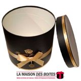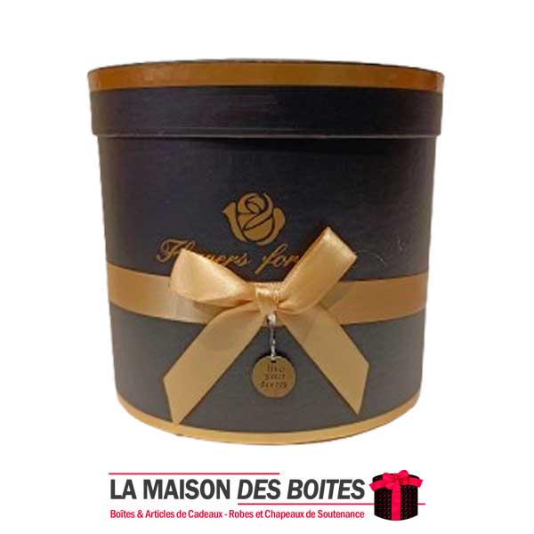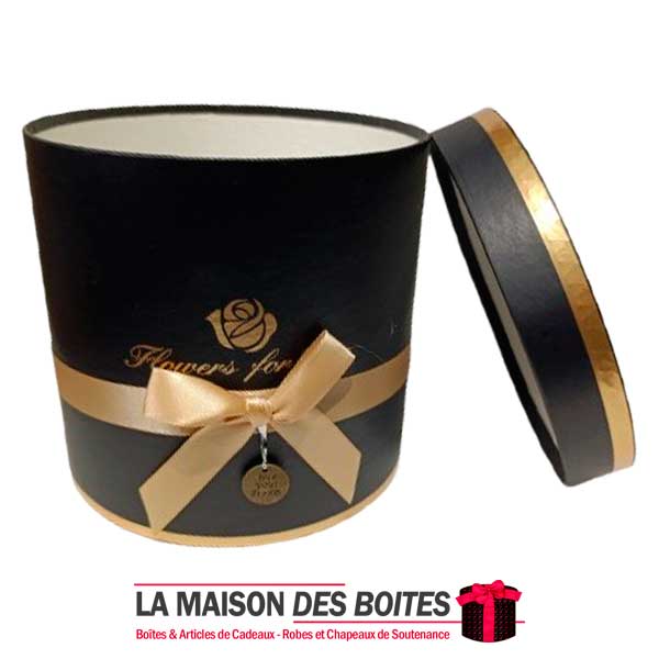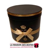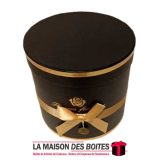 Une très belle façon d’offrir pour la Saint-Valentin ou bien d’autres occasions: Boîte Cadeaux Cylindrique en carton très épais de qualité, avec Couvercle en couleur noir, Orné d’un nœud cadeaux en ruban Satiné & Doré