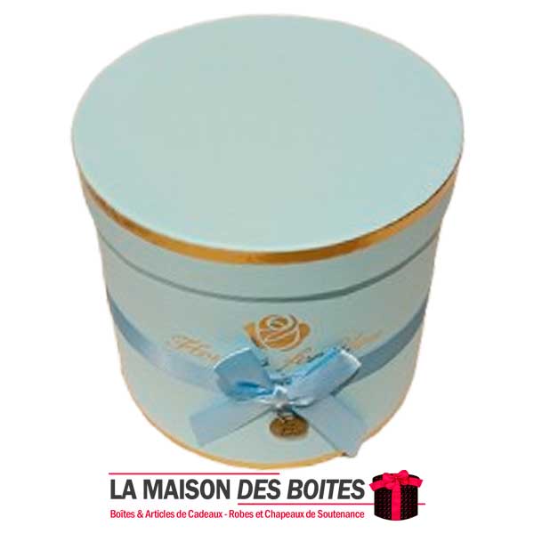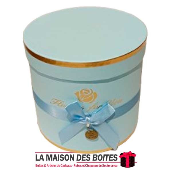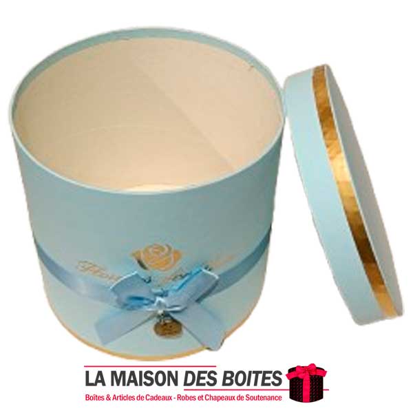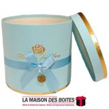 Une très belle façon d’offrir pour la Saint-Valentin ou bien d’autres occasions: Boîte Cadeaux Cylindrique en carton très épais de qualité, avec Couvercle en couleur Bleu, Orné d’un nœud cadeaux en ruban Satiné & Bleu