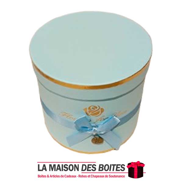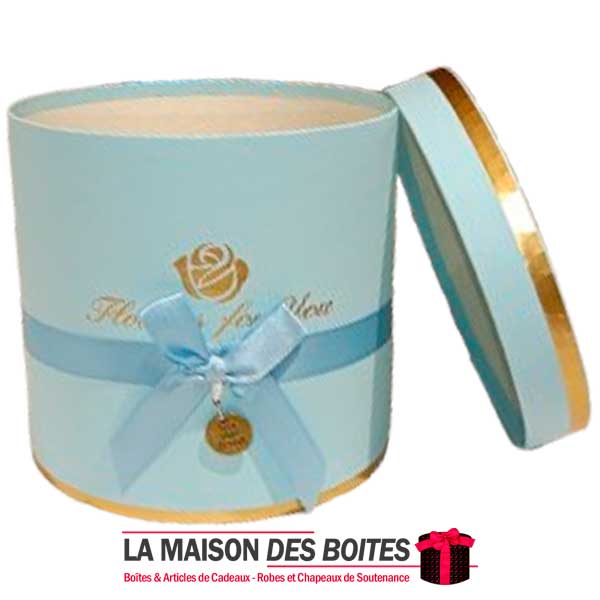 Une très belle façon d’offrir pour la Saint-Valentin ou bien d’autres occasions: Boîte Cadeaux Cylindrique en carton très épais de qualité, avec Couvercle en couleur Bleu, Orné d’un nœud cadeaux en ruban Satiné & Bleu
