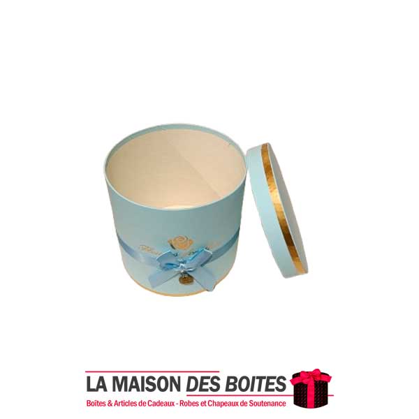 Une très belle façon d’offrir pour la Saint-Valentin ou bien d’autres occasions: Boîte Cadeaux Cylindrique en carton très épais de qualité, avec Couvercle en couleur Bleu, Orné d’un nœud cadeaux en ruban Satiné & Bleu