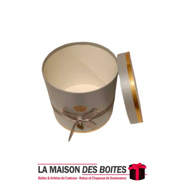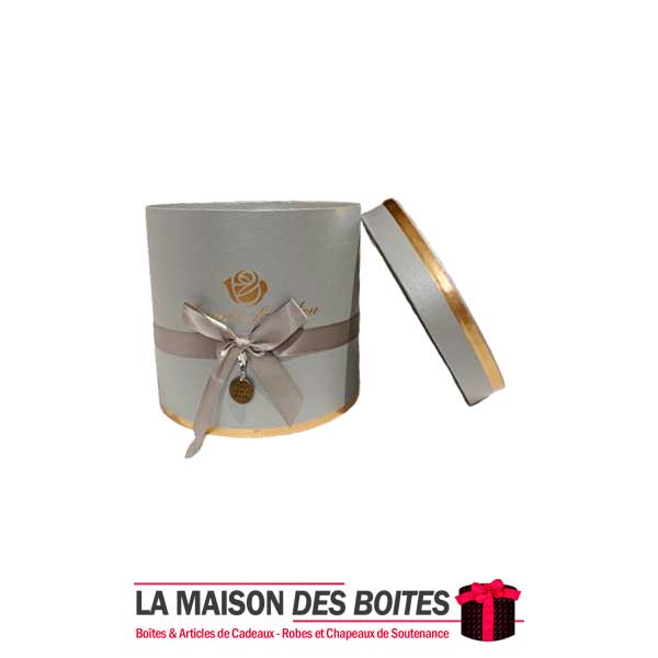 Une très belle façon d’offrir pour la Saint-Valentin ou bien d’autres occasions: Boîte Cadeaux Cylindrique en carton très épais de qualité, avec Couvercle en couleur Gris, Orné d’un nœud cadeaux en ruban Satiné & Gris