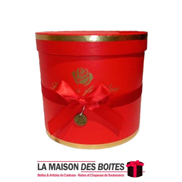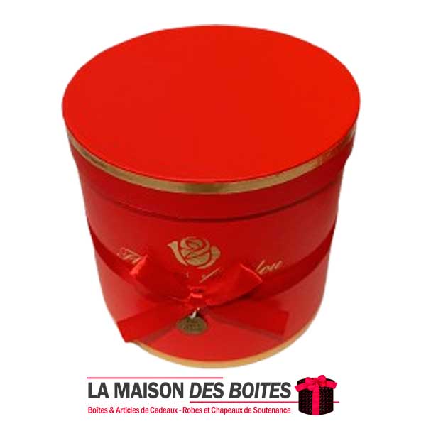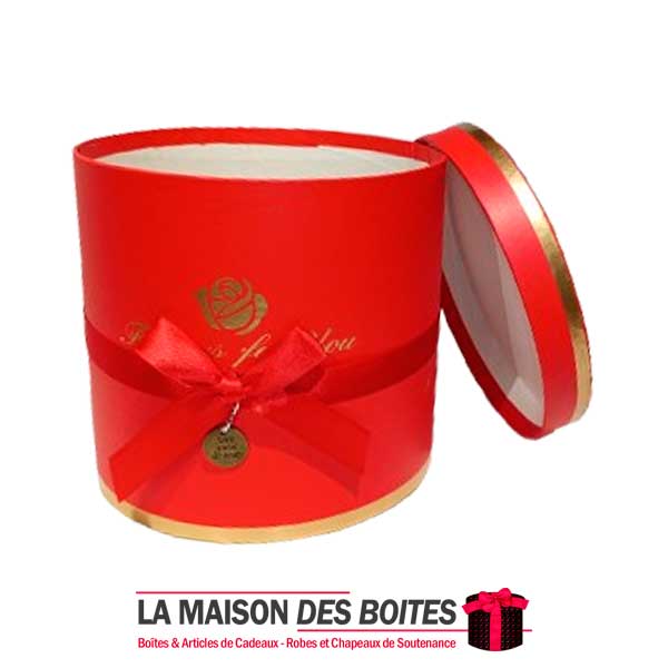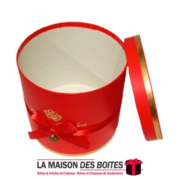 Une très belle façon d’offrir pour la Saint-Valentin ou bien d’autres occasions: Boîte Cadeaux Cylindrique en carton très épais de qualité, avec Couvercle en couleur Rouge, Orné d’un nœud cadeaux en ruban Satiné & Rouge