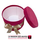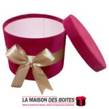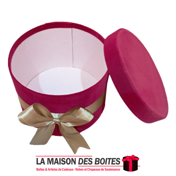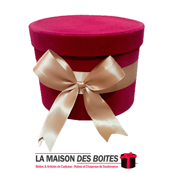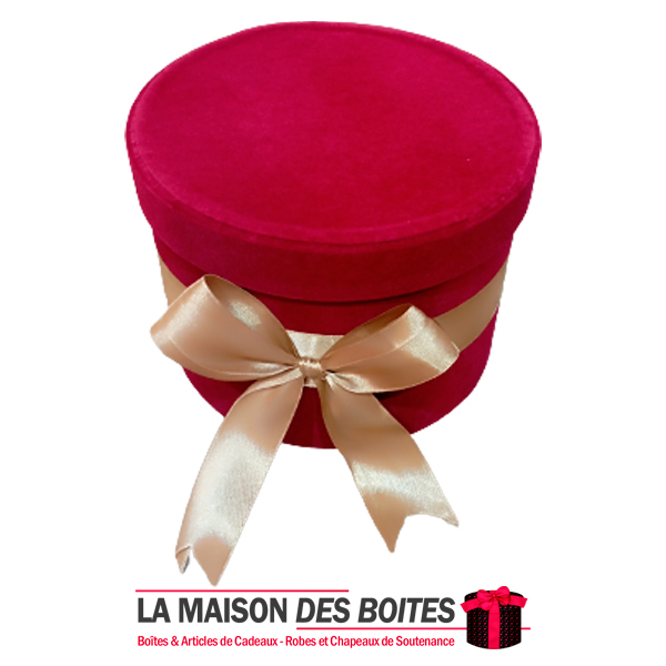 Boîte Cadeau sous Forme Ronde en Velours de couleur Rouge, avec Ruban Satiné Doré , Une très belle façon d’offrir des fleurs pour l’occasion de fiançaille, declaration d’amour , saint-valentine …….