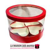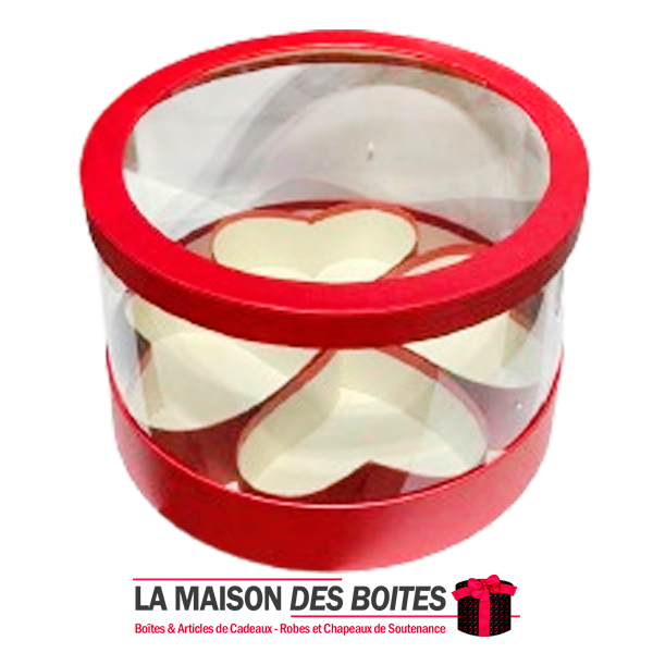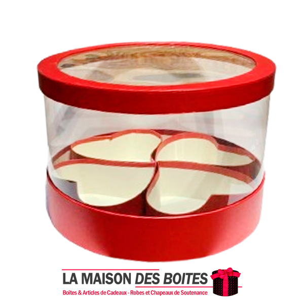 Boîte Cadeau sous Forme Cylindrique Transparent avc 4 coeur Rouge , Une très belle façon d’offrir des fleurs pour la Saint-Valentin de fiancaille ..
