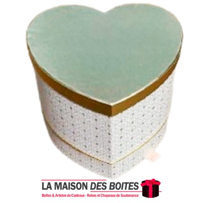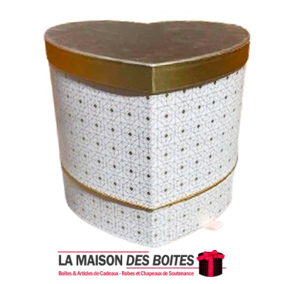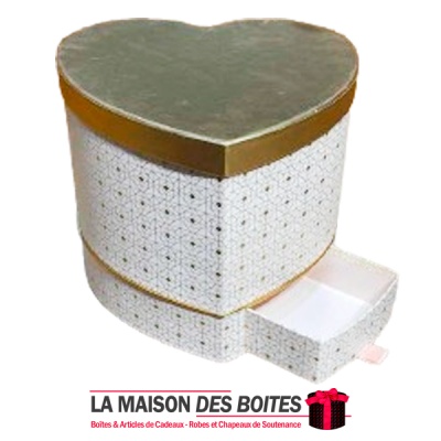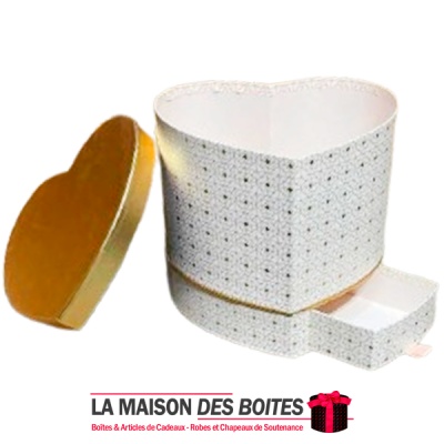 Boîte Cadeau en Carton avec Double Tiroir Forme Cœur de couleur Blanc et Doré ave Couvercle Doré , Une très belle façon d’offrir des fleurs avec etage pour Chocolat a l’ocasion de Saint-Valentin, ou bien d’autres occasions fiancaille , anniversaire …