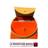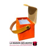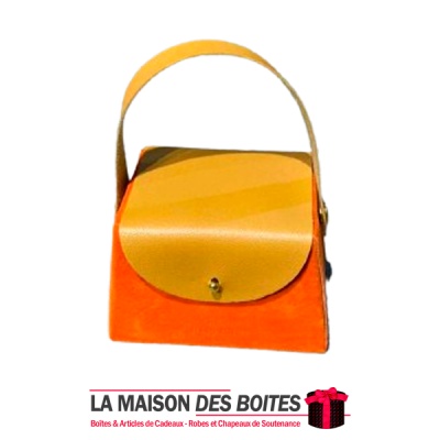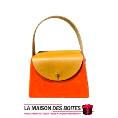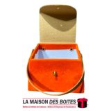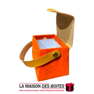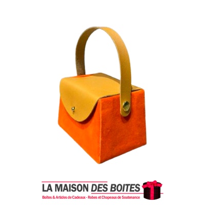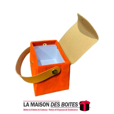 Une très belle façon d’offrir pour la Saint-Valentin ou bien d’autres occasions, boîte en carton très épais de qualité sous forme de Sacoche, couvert en velours Orange & couvercle et poingniés en cuir Marron