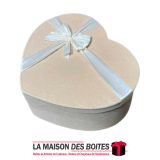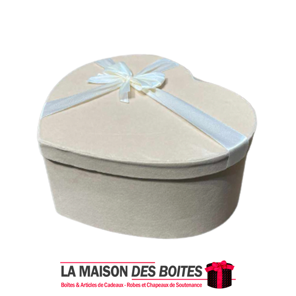 Une très belle façon d’offrir pour la Saint-Valentin ou bien d’autres occasions, boîte en carton très épais de qualité sous forme de cœur, couvert en velours Beige orné d’un nœud cadeaux en ruban satiné Ecru ,