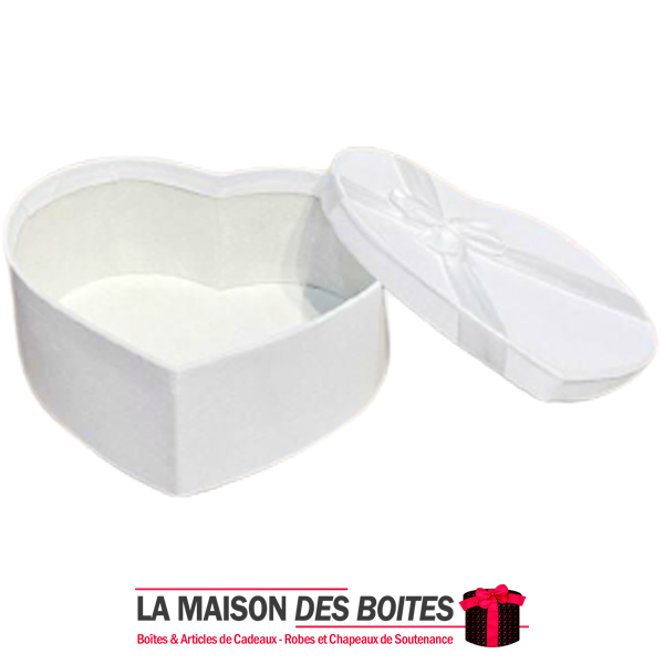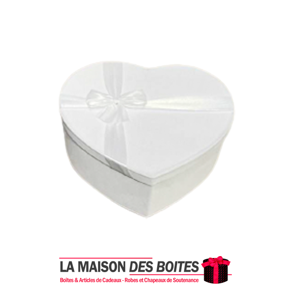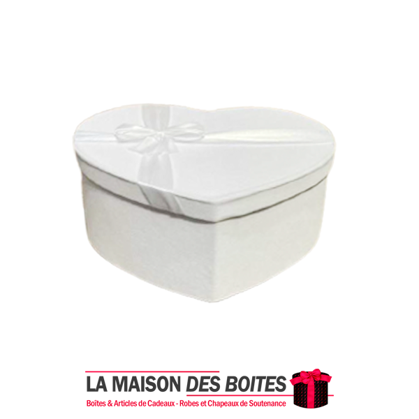 Une très belle façon d’offrir pour la Saint-Valentin ou bien d’autres occasions, boîte en carton très épais de qualité sous forme de cœur, couvert en velours Blanc orné d’un nœud cadeaux en ruban satiné BLanc ,