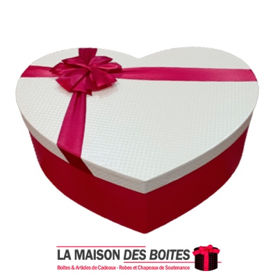 Boite cadeaux forme cœur en carton solide protège le contenu de manière optimale, de couleur Rouge , avec Couvercle Ecru en cuir orneé d’un noeud cadeau et ruban satiné en rouge , Une très belle façon d’offrir un cadeau pour la Saint-Valentin et bien d’autres occasions,