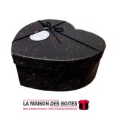 Une très belle façon d’offrir pour la Saint-Valentin ou bien d’autres occasions: de Boîte Cadeaux Coeur en carton couvert de Cuir très épais de qualité, Boite avec Couvercle en couleur noir, Orné d’un nœud cadeaux en ruban noir & Doré