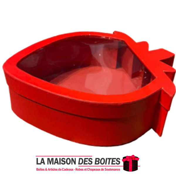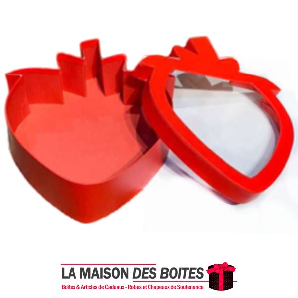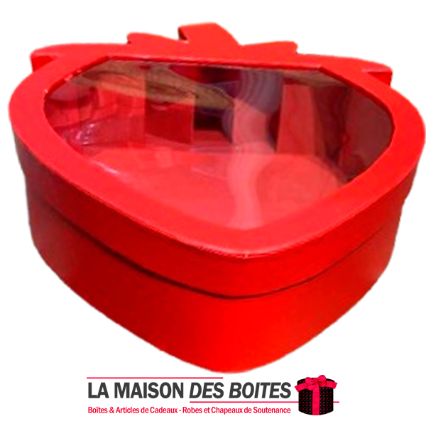 Une très belle façon d’offrir pour la Saint-Valentin ou bien d’autres occasions, boîte en carton très épais de qualité, Forme Fraise avec Couvercle Transparent – Rouge, pour offrir chocolat , bonbons ou n’importe quel cadeau