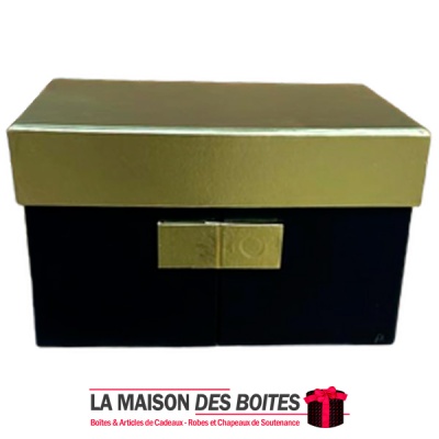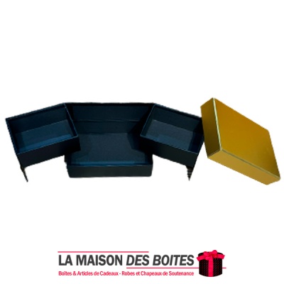 Une très belle façon d’offrir pour la Saint-Valentin, réveillon ou bien d’autres occasions: Boîte Cadeaux Rectagulaire Noir avec Couvercle Doré Contient 3 Etages , très épais de qualité