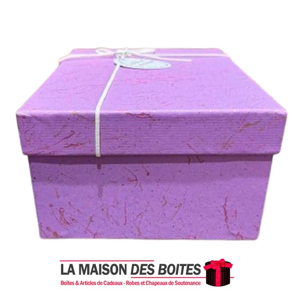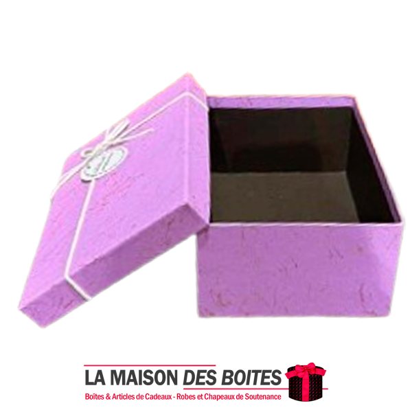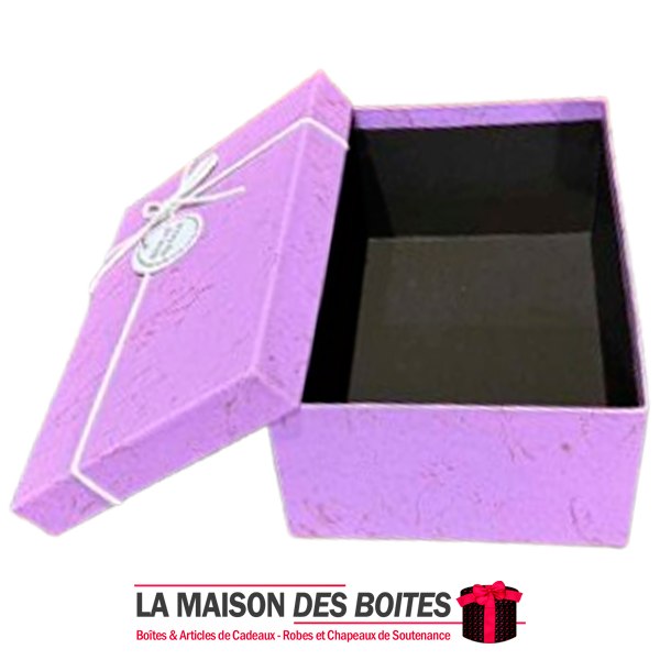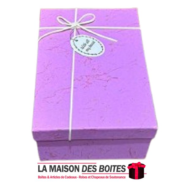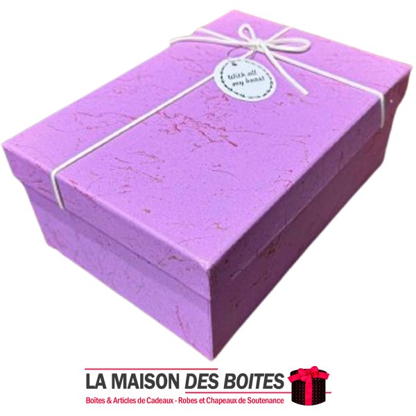Une très belle façon d’offrir pour la Saint-Valentin ou bien d’autres occasions: de Boîte Cadeaux Rectangulaire en carton couvert de Cuir très épais de qualité, Boite avec Couvercle en couleur Viole, Orné d’un nœud cadeaux en ruban Blanc & Doré