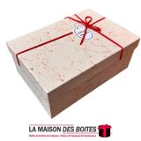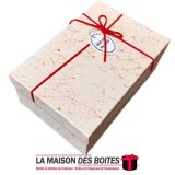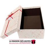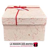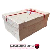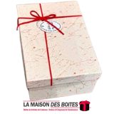 Une très belle façon d’offrir pour la Saint-Valentin ou bien d’autres occasions: de Boîte Cadeaux Rectangulaire en carton couvert de Cuir très épais de qualité, Boite avec Couvercle en couleur Beige, Orné d’un nœud cadeaux en ruban rouge & Doré