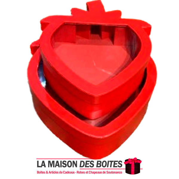 Une très belle façon d’offrir pour la Saint-Valentin ou bien d’autres occasions, Ce lot se compose de 2 de boîtes en carton très épais de qualité, Forme Fraise avec Couvercle Transparent – Rouge, pour offrir chocolat , bonbons ou n’importe quel cadeau