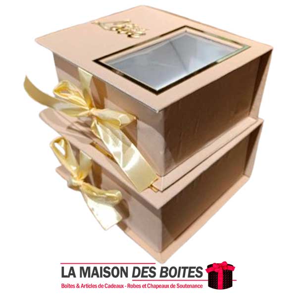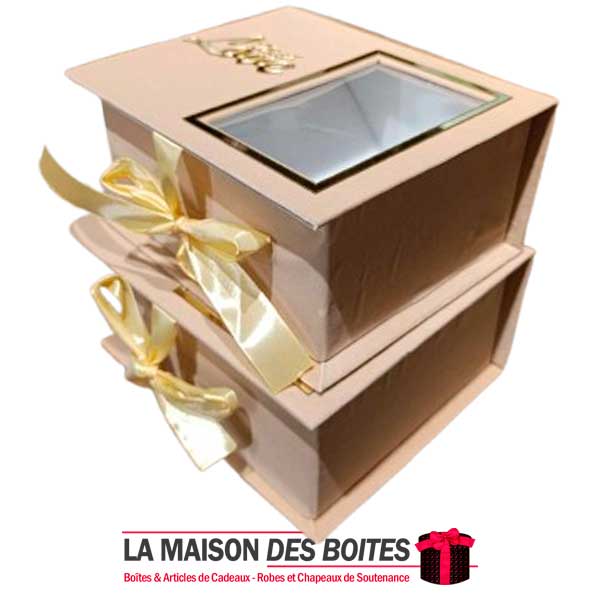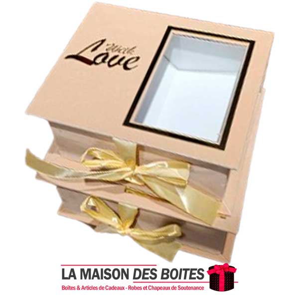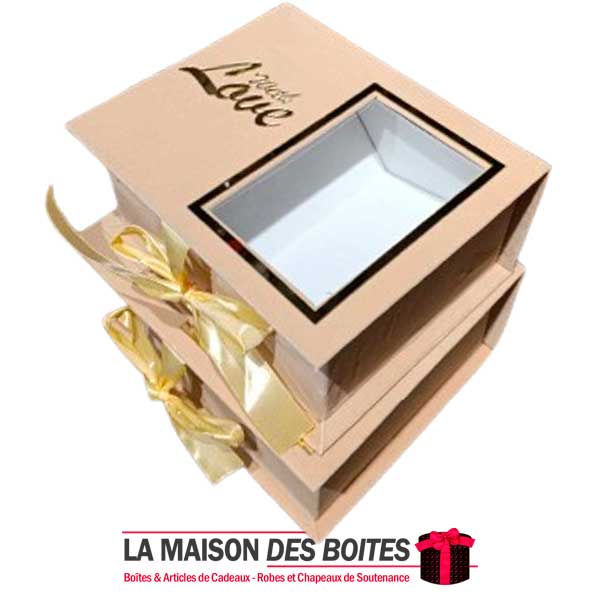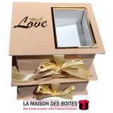 Une très belle façon d’offrir pour la Saint-Valentin ou bien d’autres occasions, Ce lot se compose de 2 de boîtes en carton Couvert en velours designé avec Plexi Doré « With Love » très épais de qualité, rectangulaire avec séparation en milieu avec Fenêtre transparent , orné d’un Ruban satiné de couleur Beige