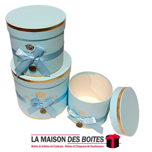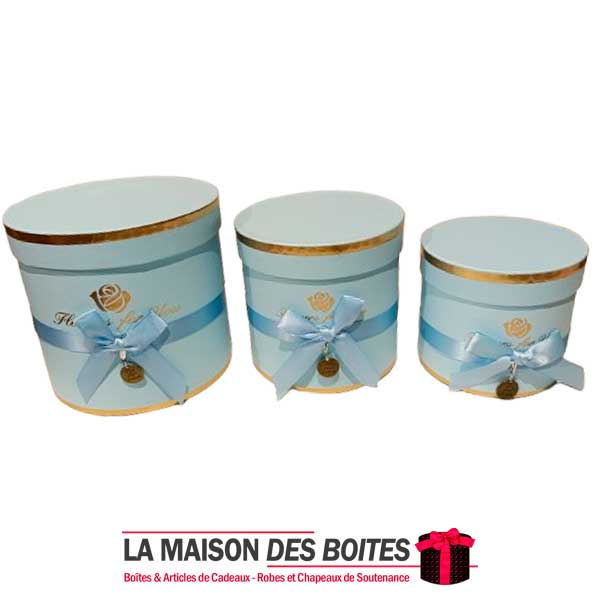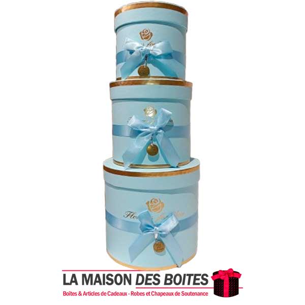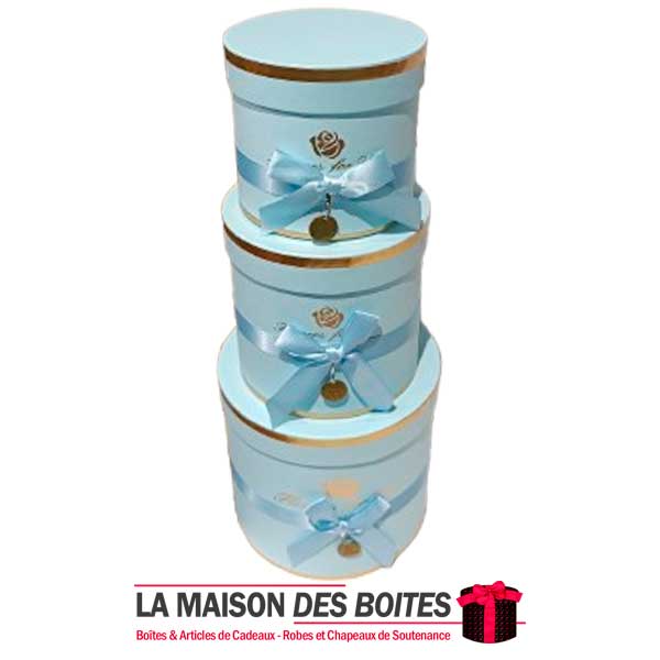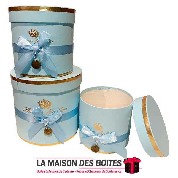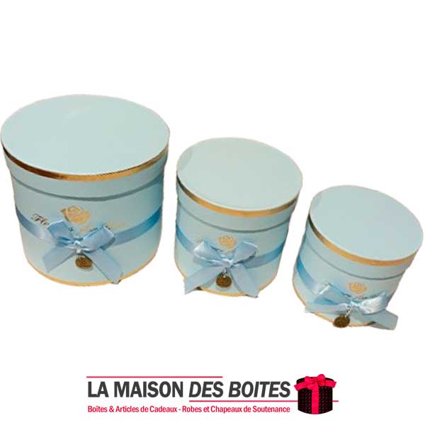 Une très belle façon d’offrir pour la Saint-Valentin ou bien d’autres occasions: Lot de 3 Boîtes Cadeaux Cylindrique en carton très épais de qualité, 3 Boites avec Couvercle en couleur Bleu, Orné d’un nœud cadeaux en ruban Satiné & Bleu