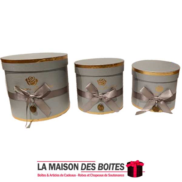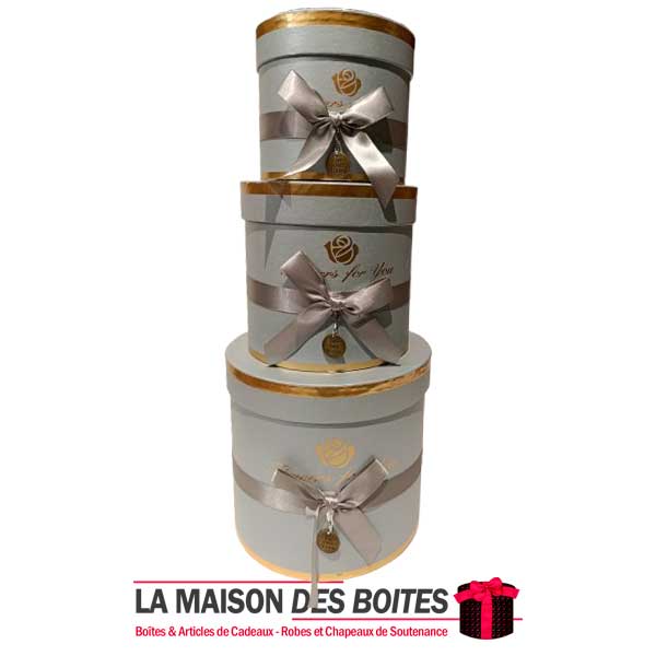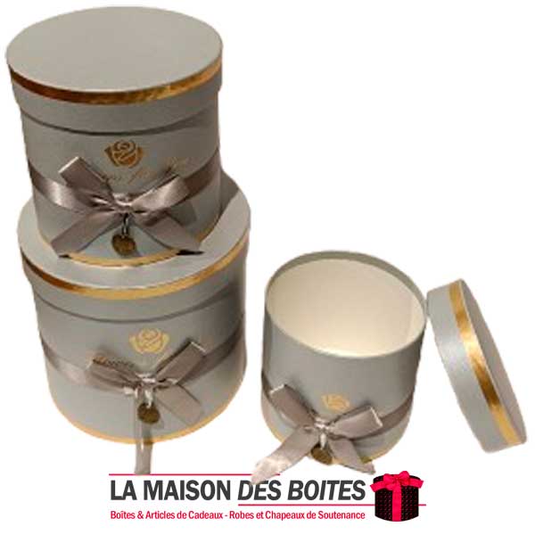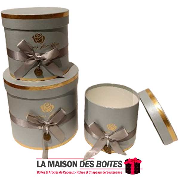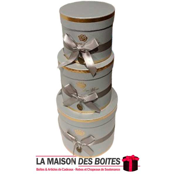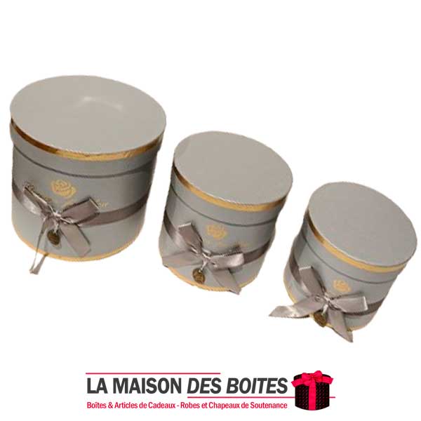 Une très belle façon d’offrir pour la Saint-Valentin ou bien d’autres occasions: Lot de 3 Boîtes Cadeaux Cylindrique en carton très épais de qualité, 3 Boites avec Couvercle en couleur Gris, Orné d’un nœud cadeaux en ruban Satiné & Gris