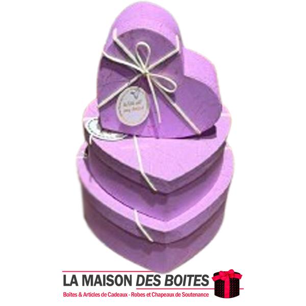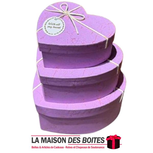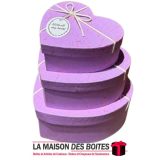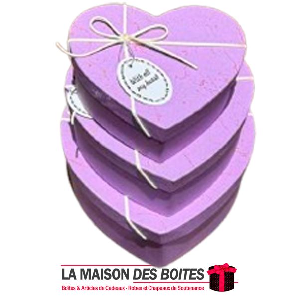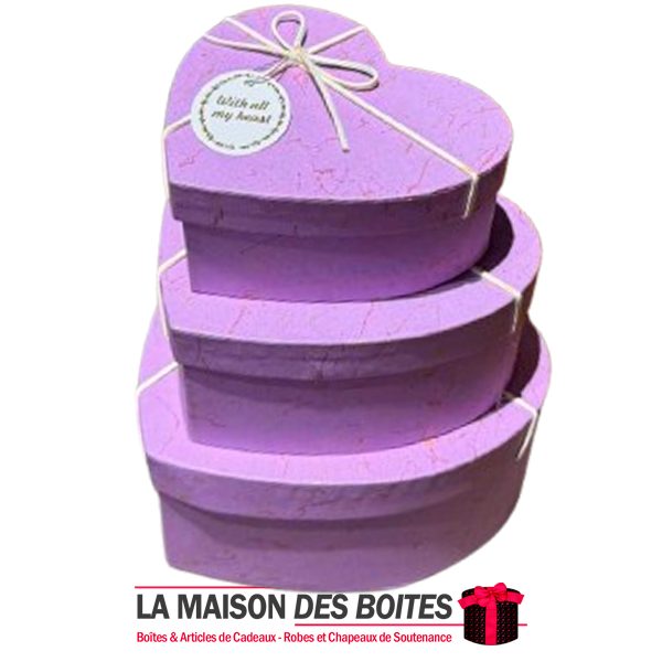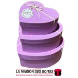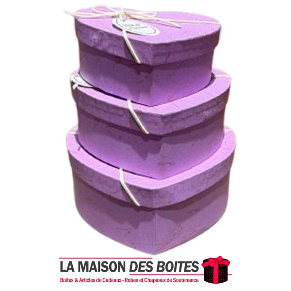 Une très belle façon d’offrir pour la Saint-Valentin ou bien d’autres occasions: Lot de 3 Boîtes Cadeaux Coeur en carton couvert de Cuir très épais de qualité, Boite avec Couvercle en couleur Violet, Orné d’un nœud cadeaux en ruban blanc & Doré