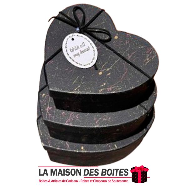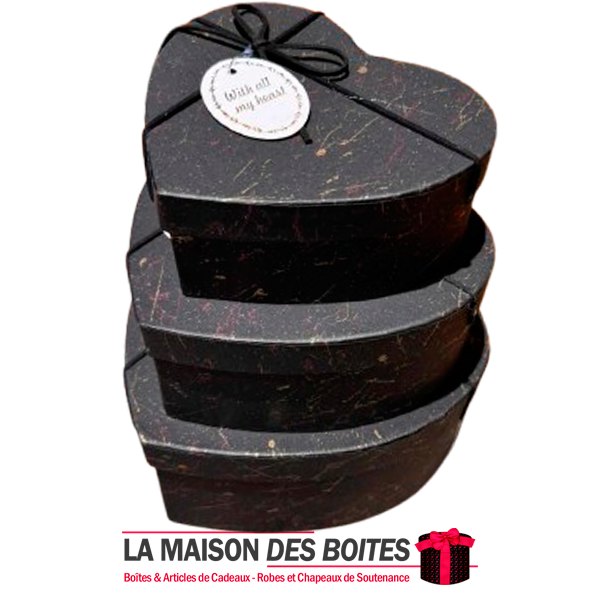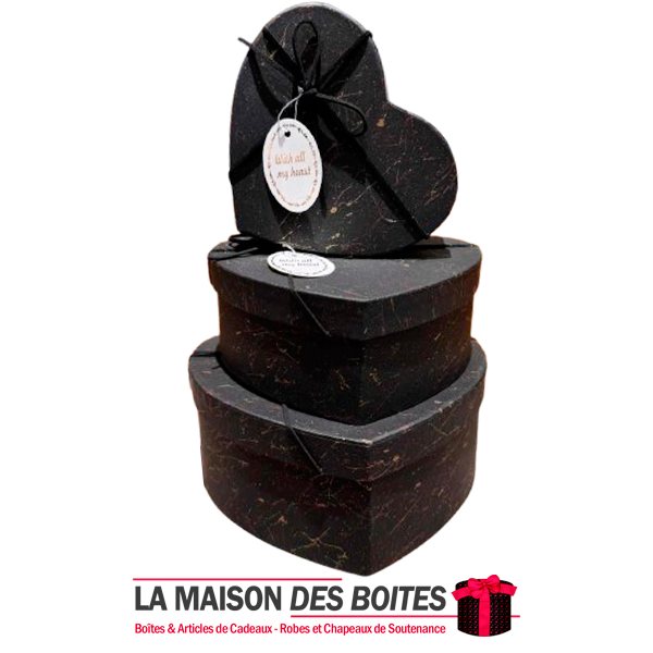 Be the first to review “Lot de 3 Boîtes Cadeaux Forme Coeur & Ruban – Noir”