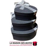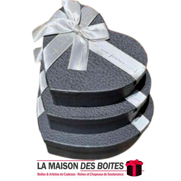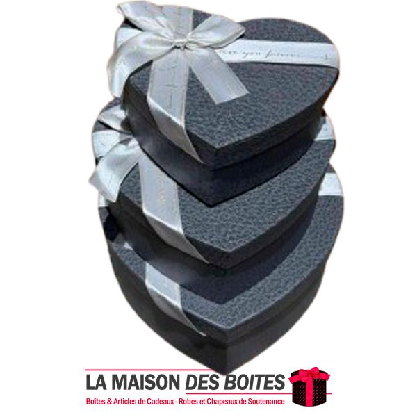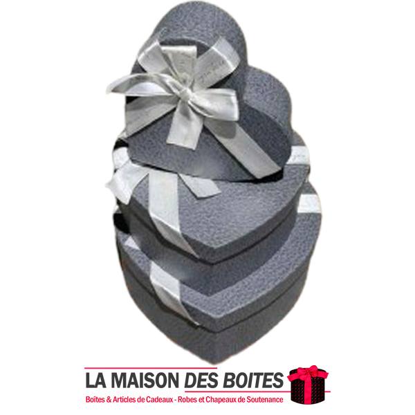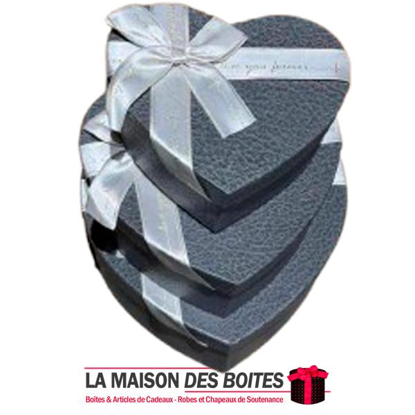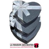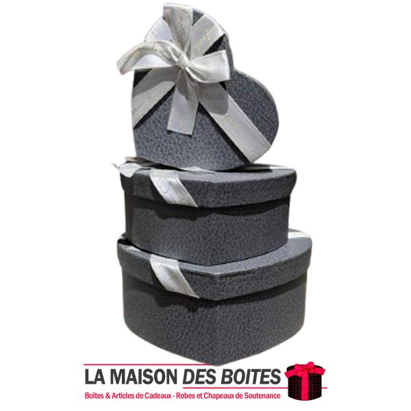 Une très belle façon d’offrir pour la Saint-Valentin ou bien d’autres occasions: Lot de 3 Boîtes Cadeaux Coeur en carton couvert de Cuir très épais de qualité, Boite avec Couvercle en couleur Gris, Orné d’un nœud cadeaux en ruban Satiné & Doré