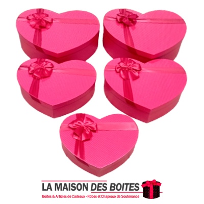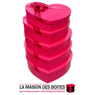 Lot de 5 Boites cadeaux forme cœur en carton solide protège le contenu de manière optimale, de couleur Rouge , avec Couvercle Rouge en cuir orneé d’un noeud cadeau et ruban satiné en rouge , Une très belle façon d’offrir un cadeau pour la Saint-Valentin et bien d’autres occasions,