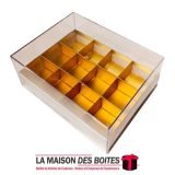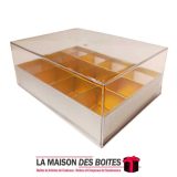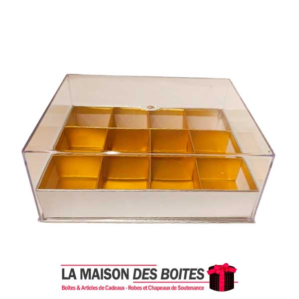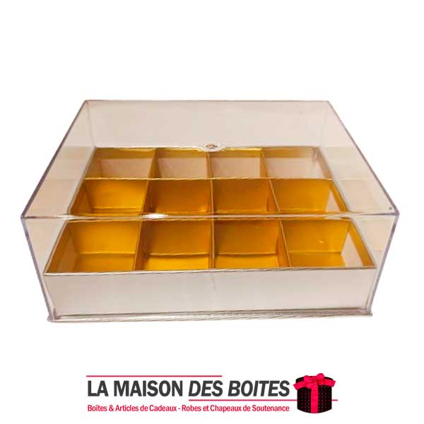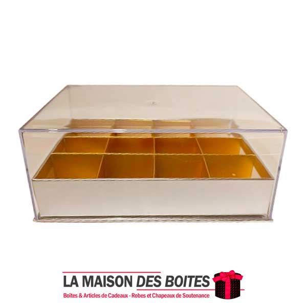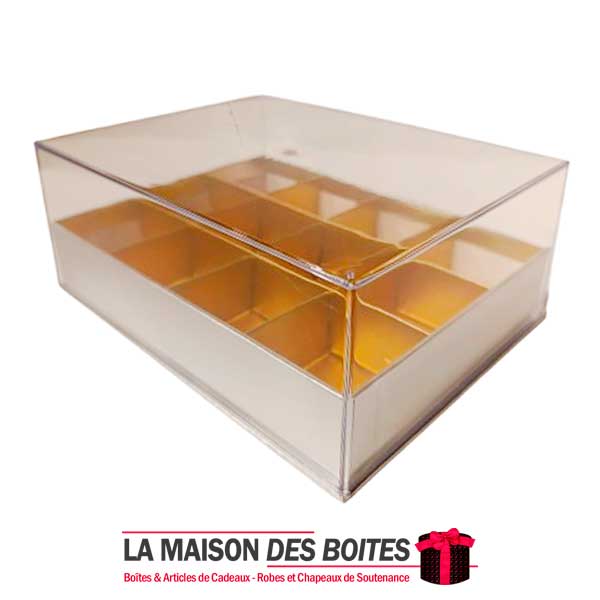 Le coffret chocolat, à la forme rectangulaire, offre la possibilité de présenter joliment votre gamme de bonbons de chocolat avec couvercle en plexi transparent . Véritable alternative au ballotin chocolat, le coffret rectangle rigide permet un rangement optimisé, pouvant accueillir vos chocolats sur un ou plusieurs niveaux.