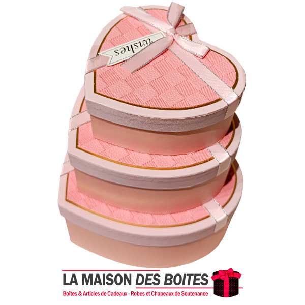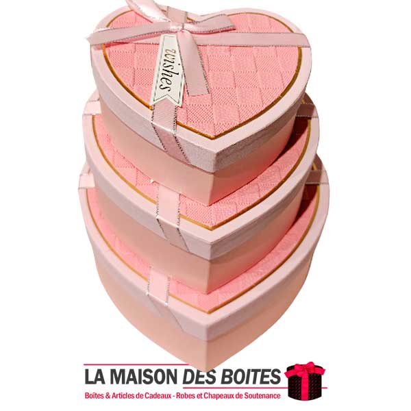 Une très belle façon d’offrir pour la Saint-Valentin ou bien d’autres occasions, Ce lot se compose de 3 de boîtes en carton très épais de qualité sous forme de cœur, Avec Couvercle orné d’un Ruban satiné Rose