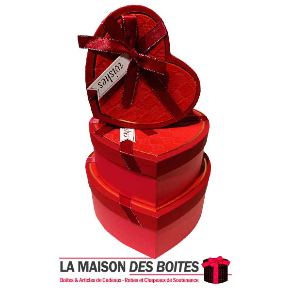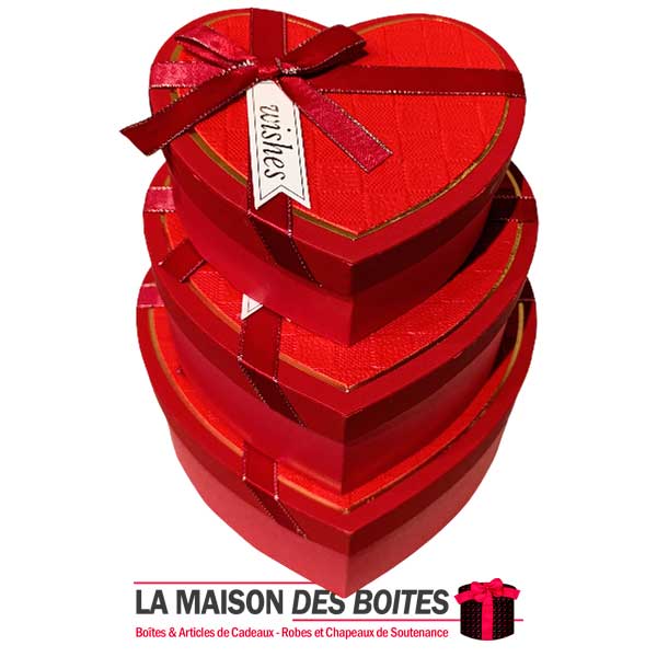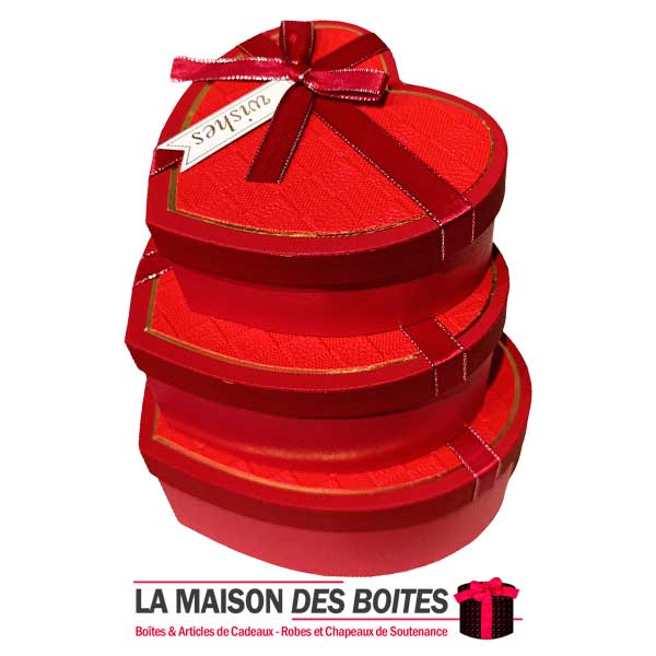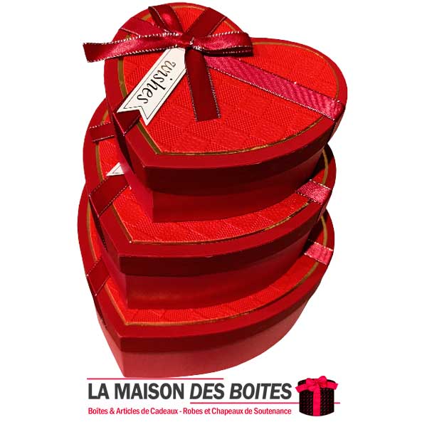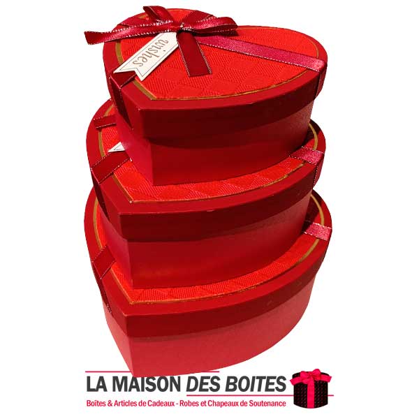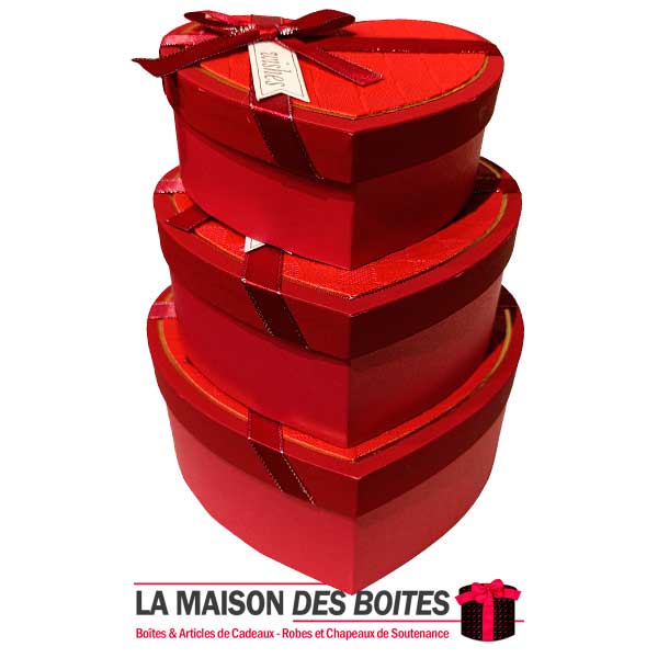 Une très belle façon d’offrir pour la Saint-Valentin ou bien d’autres occasions, Ce lot se compose de 3 de boîtes en carton très épais de qualité sous forme de cœur, Avec Couvercle orné d’un Ruban satiné Rouge