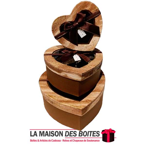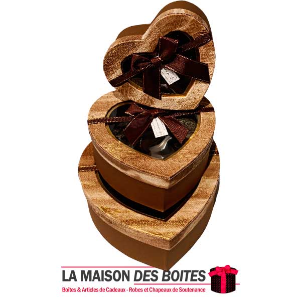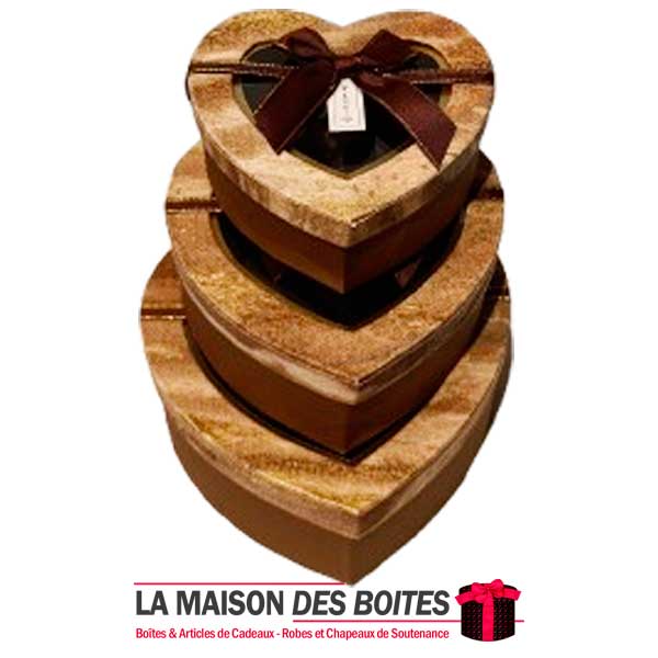 Une très belle façon d’offrir pour la Saint-Valentin ou bien d’autres occasions, Ce lot se compose de 3 de boîtes en carton très épais de qualité sous forme de cœur, Avec Couvercle transparent orné d’un Ruban satiné Marron
