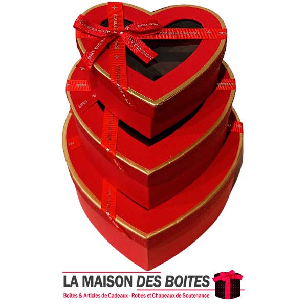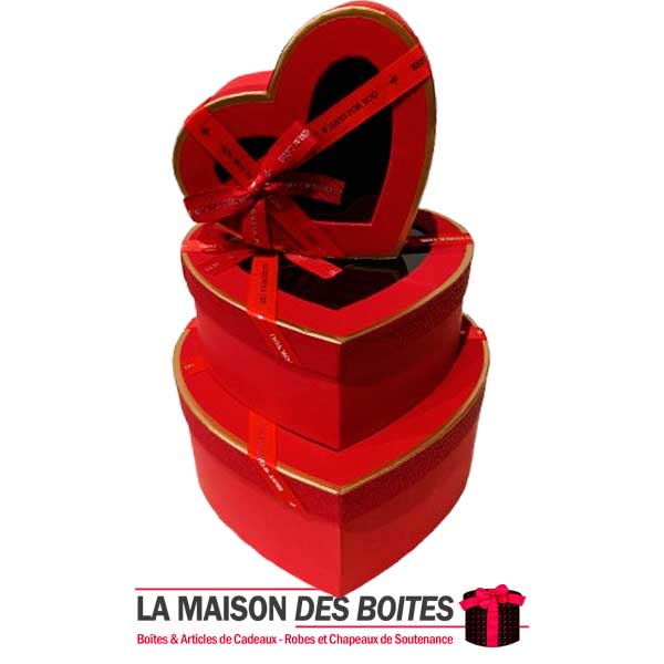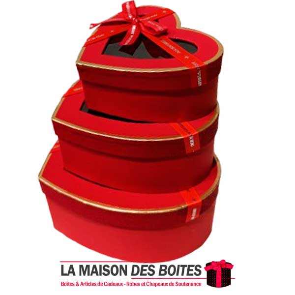 Une très belle façon d’offrir pour la Saint-Valentin ou bien d’autres occasions, Ce lot se compose de 3 de boîtes en carton très épais de qualité sous forme de cœur, Avec Couvercle transparent orné d’un Ruban satiné Rouge