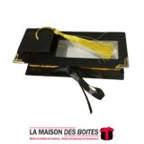 Be the first to review “Boîte Pâtisserie en Daim Rectangulaire pour Soutenance avec Couvercle Transparent- Noir & Doré – (14x5x4.3cm)”