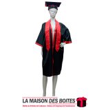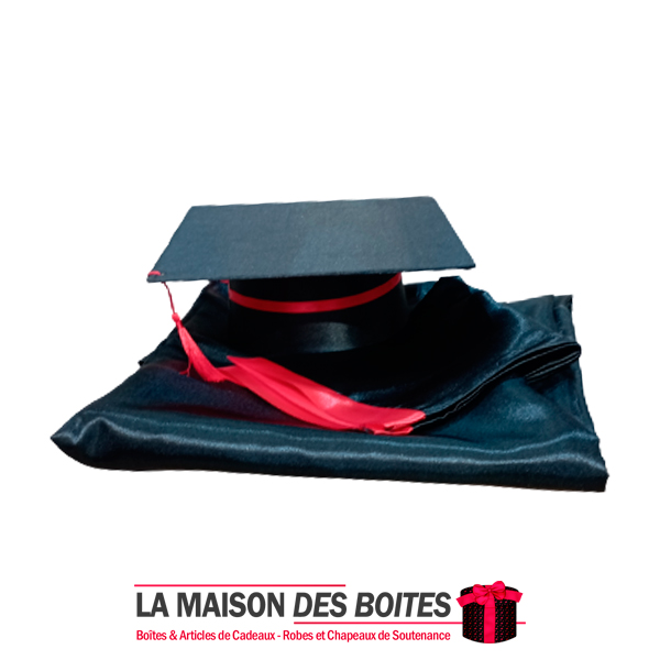 100% polyester, respirant, léger et confortable, Tenu soutenance , Tenue ,Chapeau & Écharpe Satiné Pour Soutenance en noir et ruban Satiné Rouge