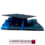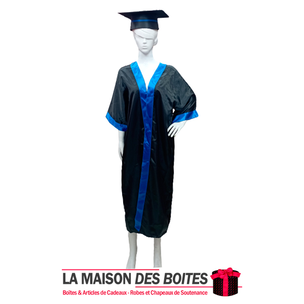 100% polyester, respirant, léger et confortable,Tenue & Chapeau Pour Soutenance – Noir avec Ruban Satiné Bleu