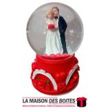 Boule de Neige Musicale pour Saint-valentin « Mariage », nous vous conseillons de choisir une boule à neige musicale avec des lumière LED , accompagné d’une chute de neige, vif et touchant, Base résine avec monuments en 3D et globe en verre avec paillettes scintillantes