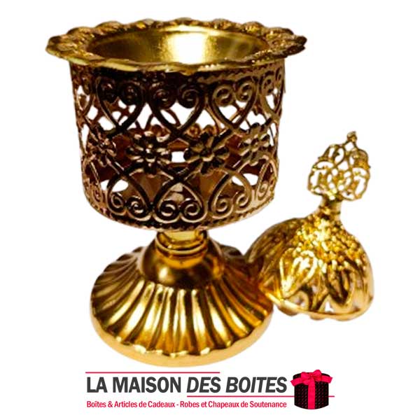Très joli encensoir à Charbon Metalique avec Couvercle Doré,Ce brûleur d’encens un côté oriental à votre décor.