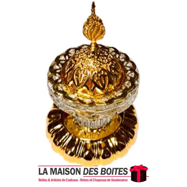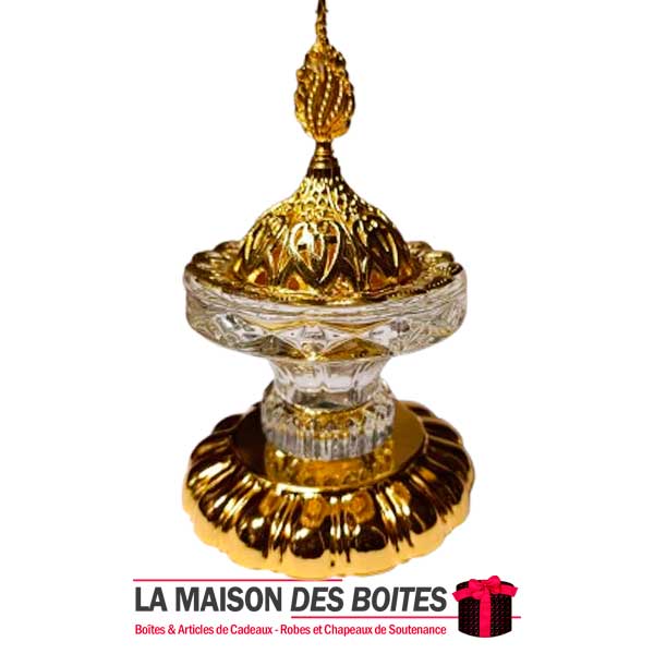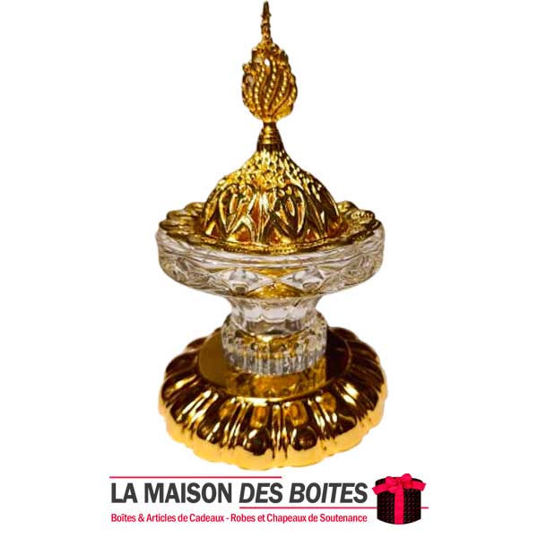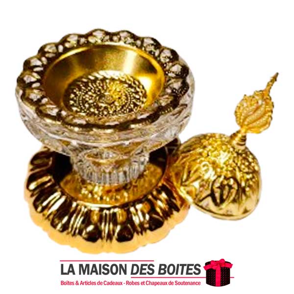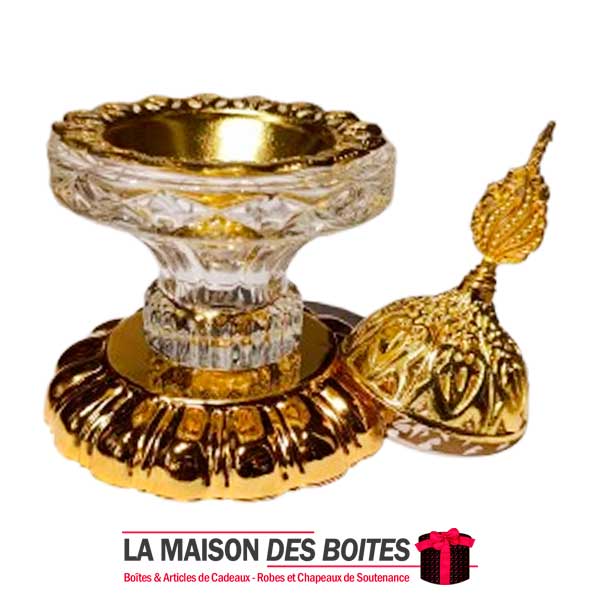 Très joli encensoir à Charbon en cristal avec Couvercle Métalique Doré,Ce brûleur d’encens un côté oriental à votre décor.