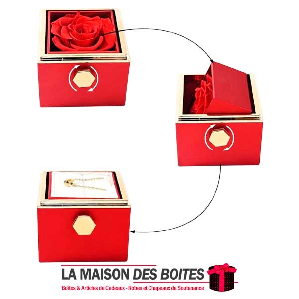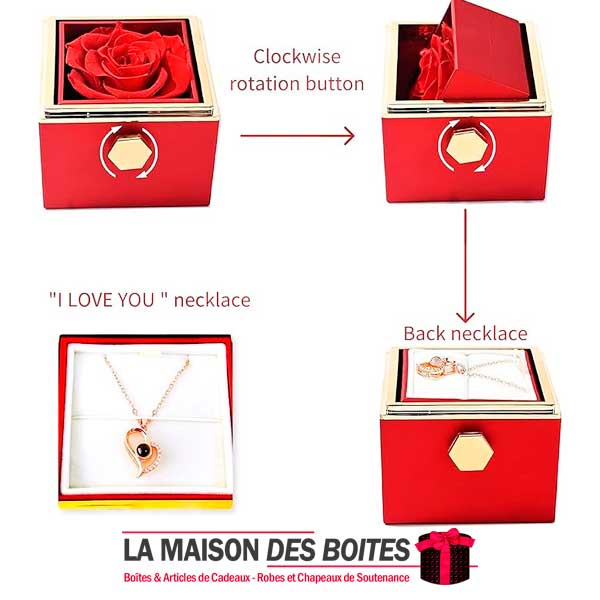 Emballage délicat : prêt à être offert. L’emballage comprend une belle boîte à bijoux ornée d’un tiroir rotatif. la fleur de rose éternelle sur le dessus, tournez le bouton, le collier de couple apparaîtrait. tout est méticuleusement arrangé pour une présentation époustouflante.