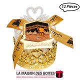 Be the first to review “Lot de 12 Boites Emballge pour Omra & Haj Rond Transparent Désigné avec Doré Orné de Ticket et Ruban”