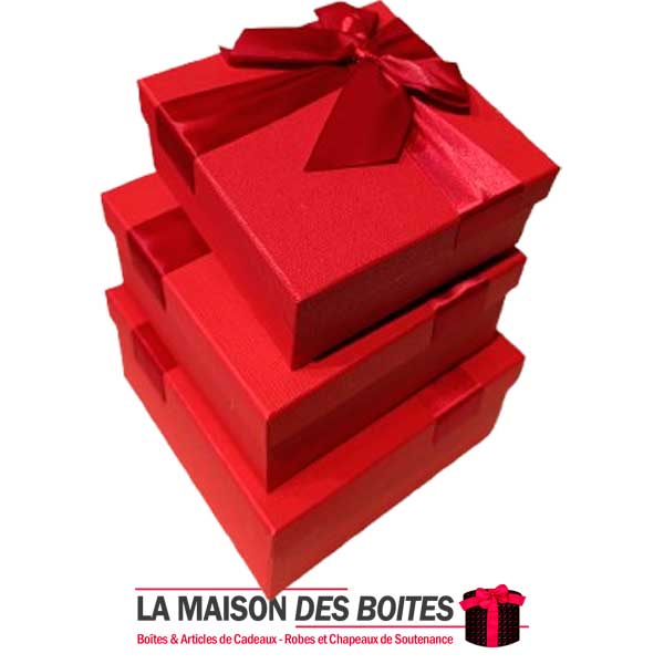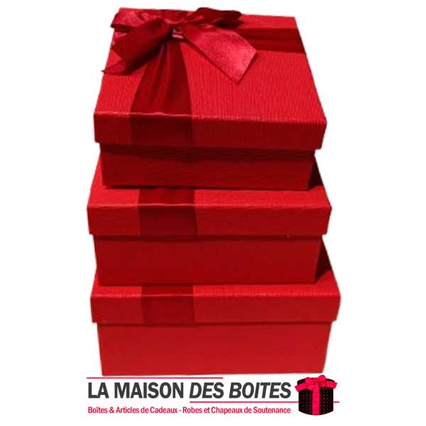 Une très belle façon d’offrir pour la Saint-Valentin ou bien d’autres occasions, Ce lot se compose de 3 de boîtes en carton très épais de qualité sous forme de Carré de couleur Rouge , Avec Couvercle orné d’un Ruban satiné Rouge